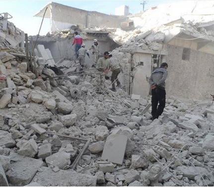 ✔ The Military Airforce Airplanes Attached The Civilian Houses By 13 2/Tons Boms Leading To killing More Tha 13 Chiled ,9 Women,3 Men,And Injuired Of 27 people In Hanano City In Halab Today.