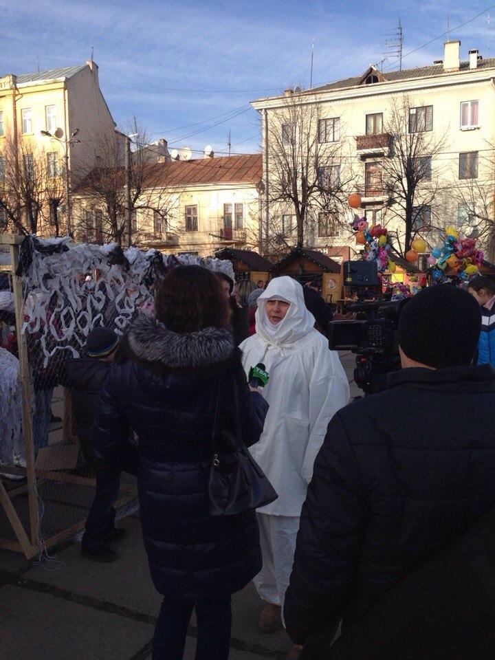 Проходячи по головній площі Чернівців побачив як люди плетуть сітки для АТО, молодці!